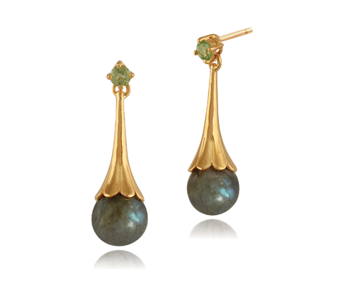 Labradorite, the grey stone with its colourful flashes flaunts brilliant labradorescence, the term coined to describe the iridescence that can be seen when light passes through it. Often parallelled with the beauty of the Northern Lights, or Aurora Borealis as they are also known, the green and blue gleams of labradorite and spectrolite mark this stone as a unique and unusual feature in any jewellery piece but also a spectacle of nature. Gemondo's labradorite gemstones have been cut en cabochon to showcase the best of each gemstone's labradorescence in smooth round, pear and oval shapes.