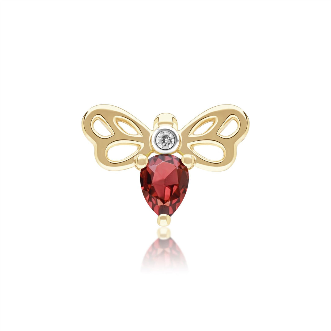 Honeycomb Art Nouveau Pear Shape Garnet and Diamond Bee Stud Earrings in 9ct Yellow Gold