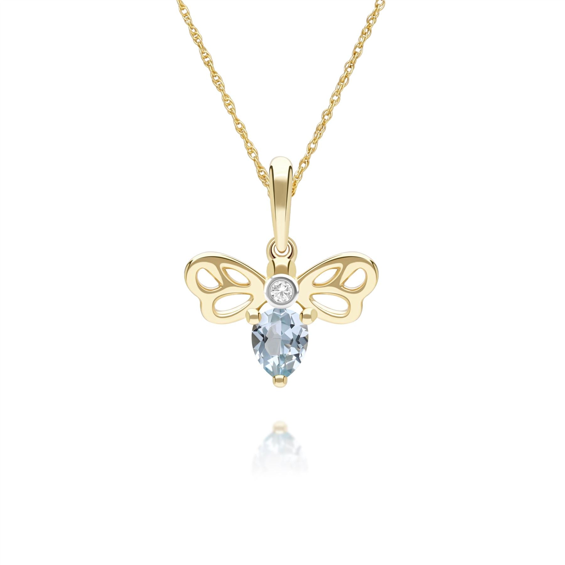 This honeycomb-inspired bee pendant necklace features sparkling topaz and diamond accents set in 9ct yellow gold to create a playful yet elegant fine jewellery design. The bee motif highlights the brilliance and contrast of the gemstones while maintaining a whimsical, refined aesthetic. Crafted in 9ct yellow gold.
