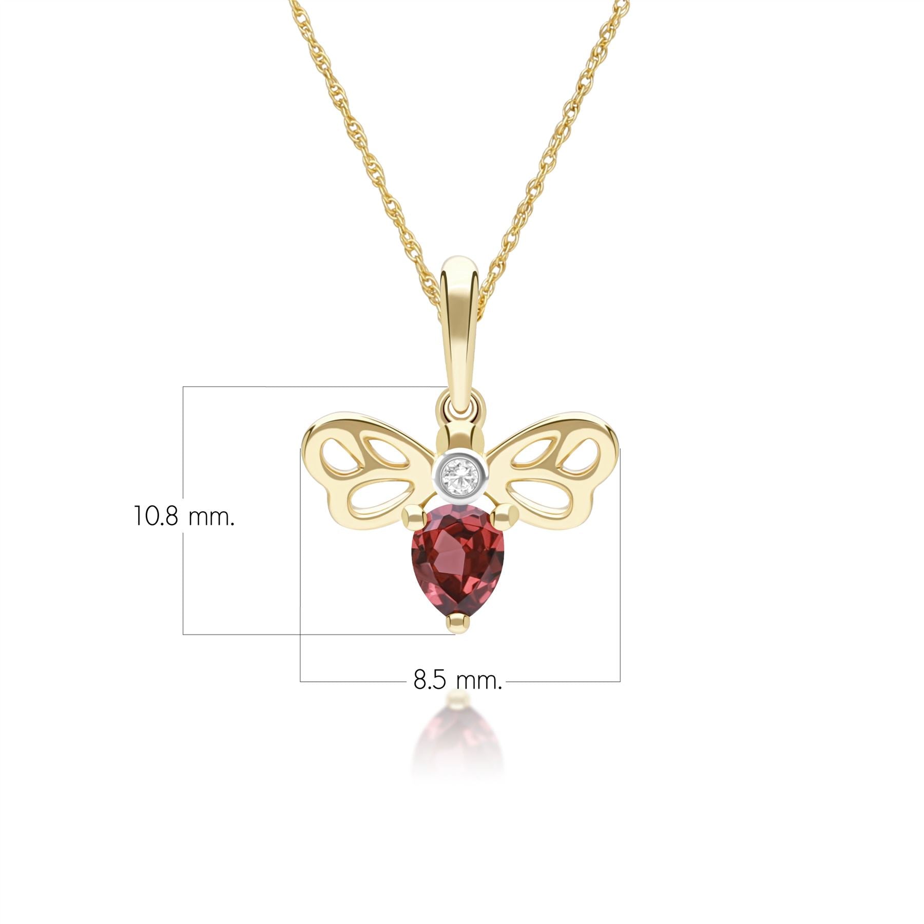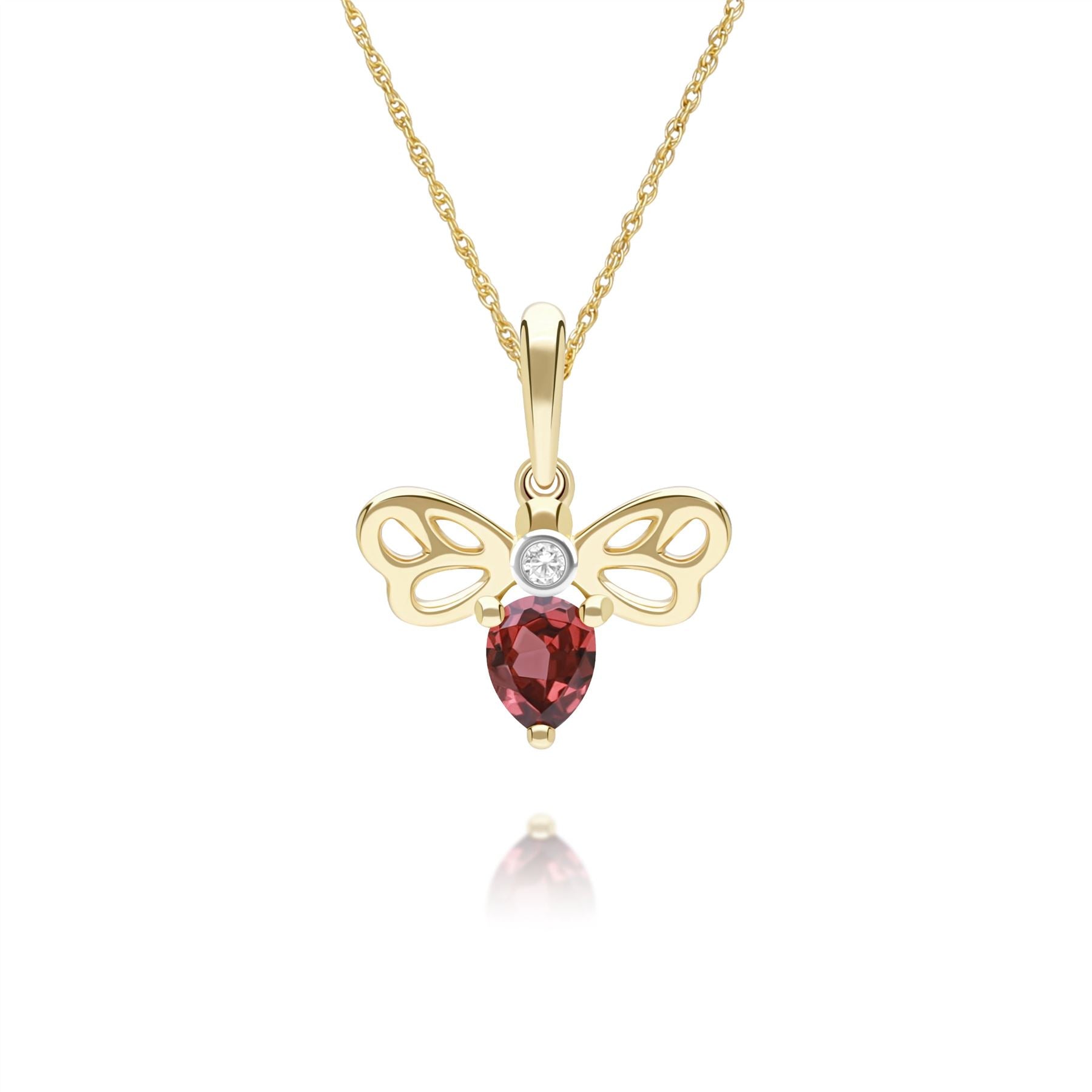 This honeycomb-inspired bee pendant necklace features garnet and diamond accents set in 9ct yellow gold to create a refined fine jewellery design. The bee motif highlights the rich colour and subtle brilliance of the gemstones while maintaining an elegant, timeless aesthetic. Crafted in 9ct yellow gold.