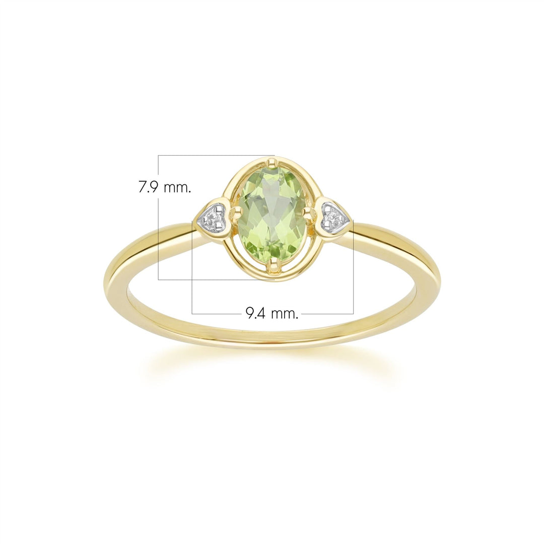 Classic Oval Peridot & Diamond Heart Ring In 9ct Yellow Gold