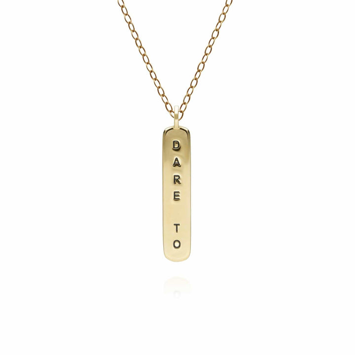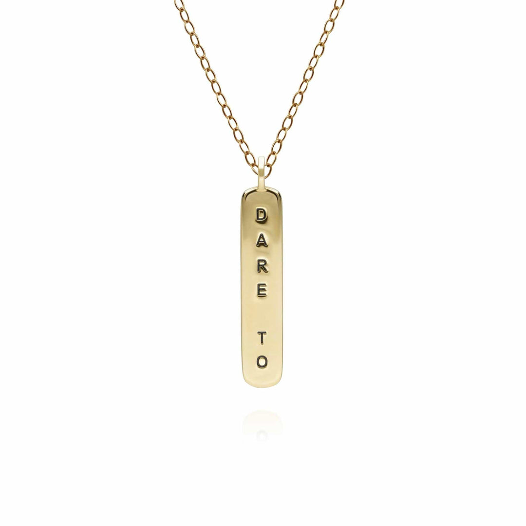 Coded Whispers Black Enamel 'Dare To' Acrostic Gemstone in Gold Plated Sterling SilverPendant