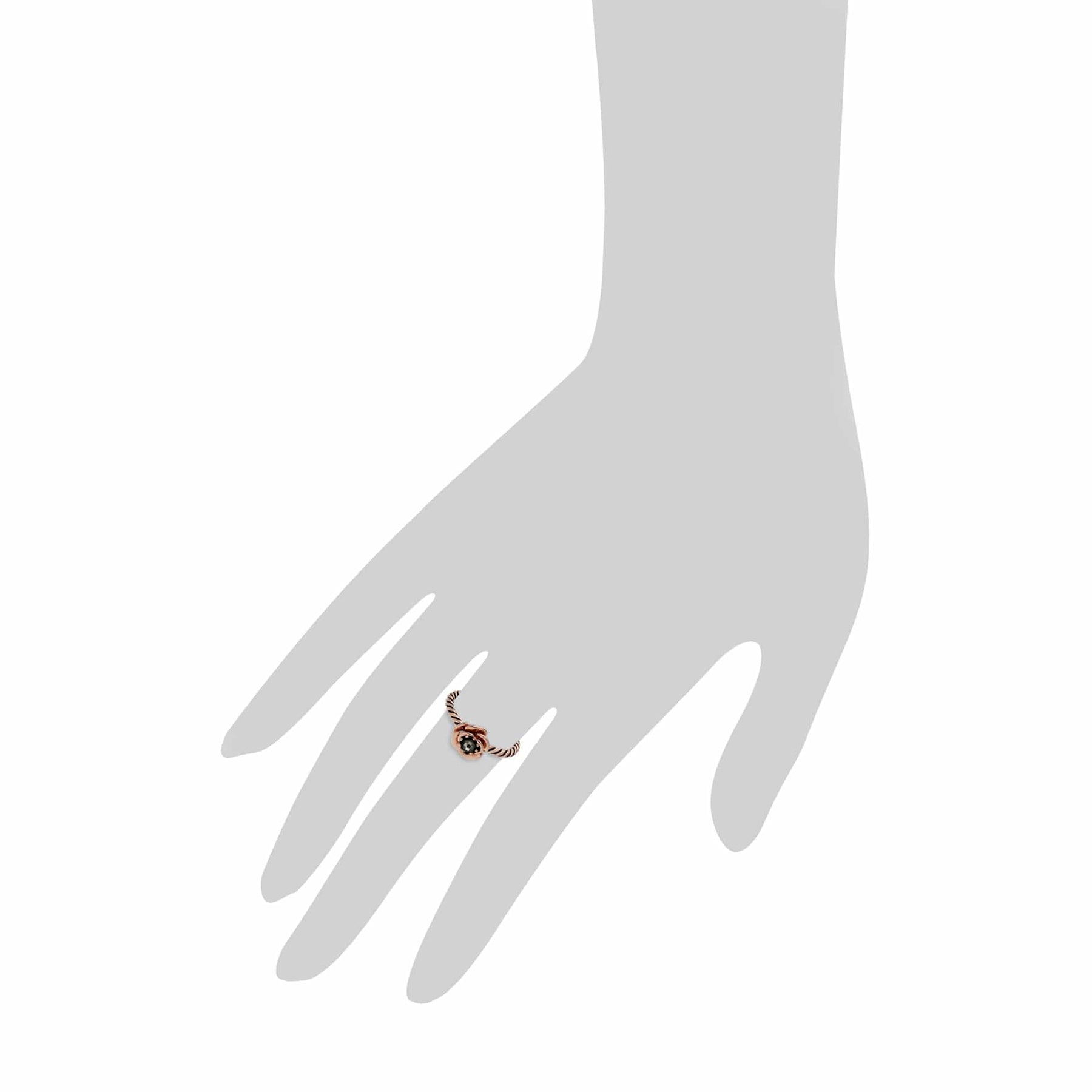 A cute rose gold plated sterling silver rope design ring featuring a flower with a round checkberboard marcasite gemstone inside.
