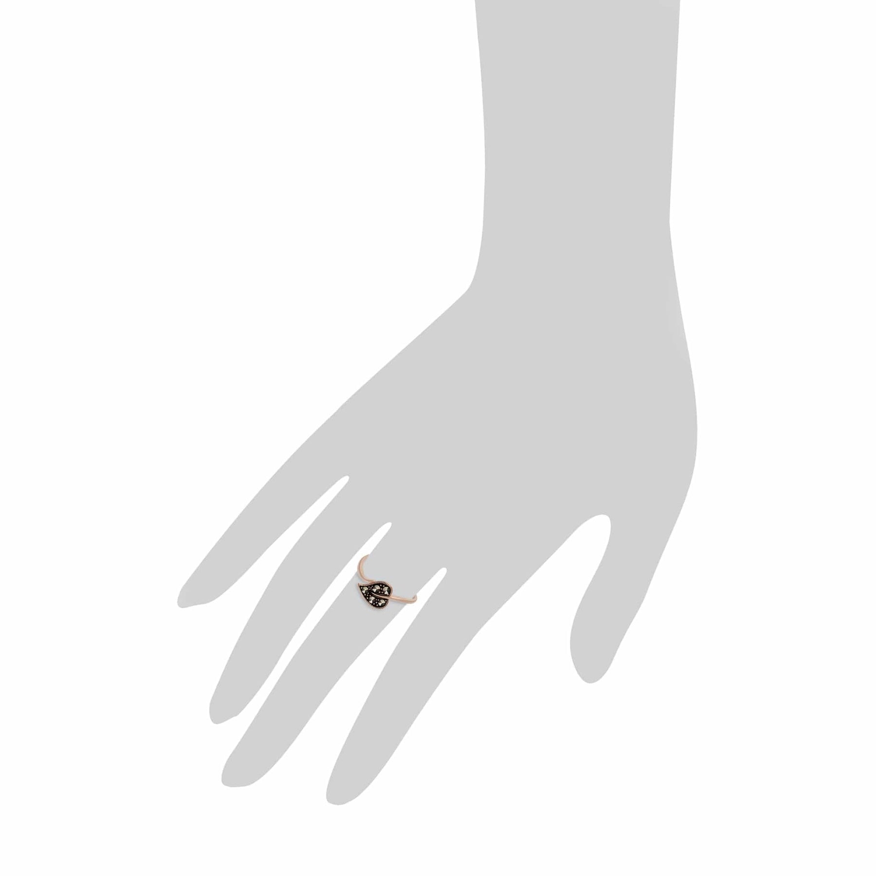A beautiful rose gold plated sterling silver leaf design ring featuring round marcasite gemstones inside.