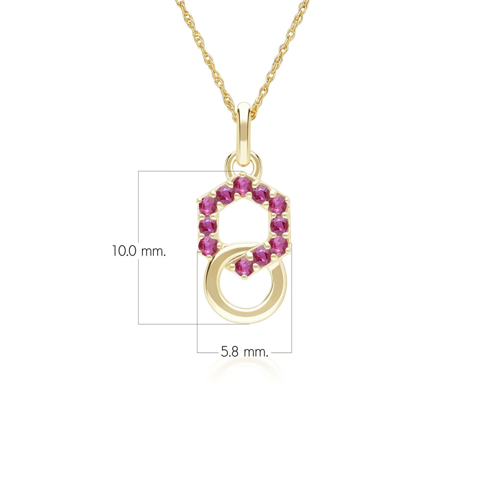 Geometric Hexagon and Round Linked with Prong set Ruby Pendant in 9ct Yellow Gold