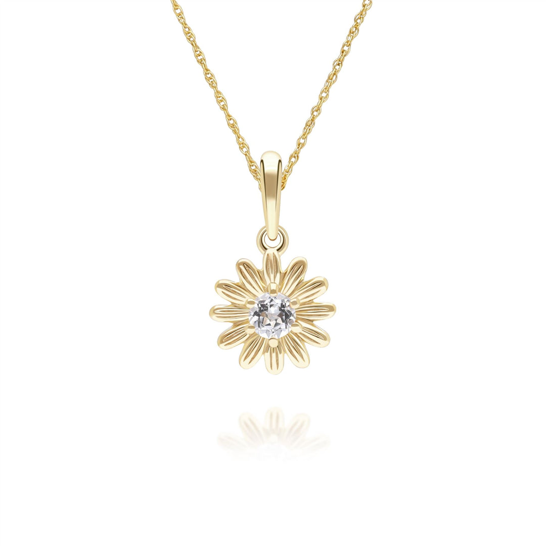 Gardenia Daisy White Sapphire Floral Halo Flower Pendant Necklace in Solid 9ct Yellow Gold