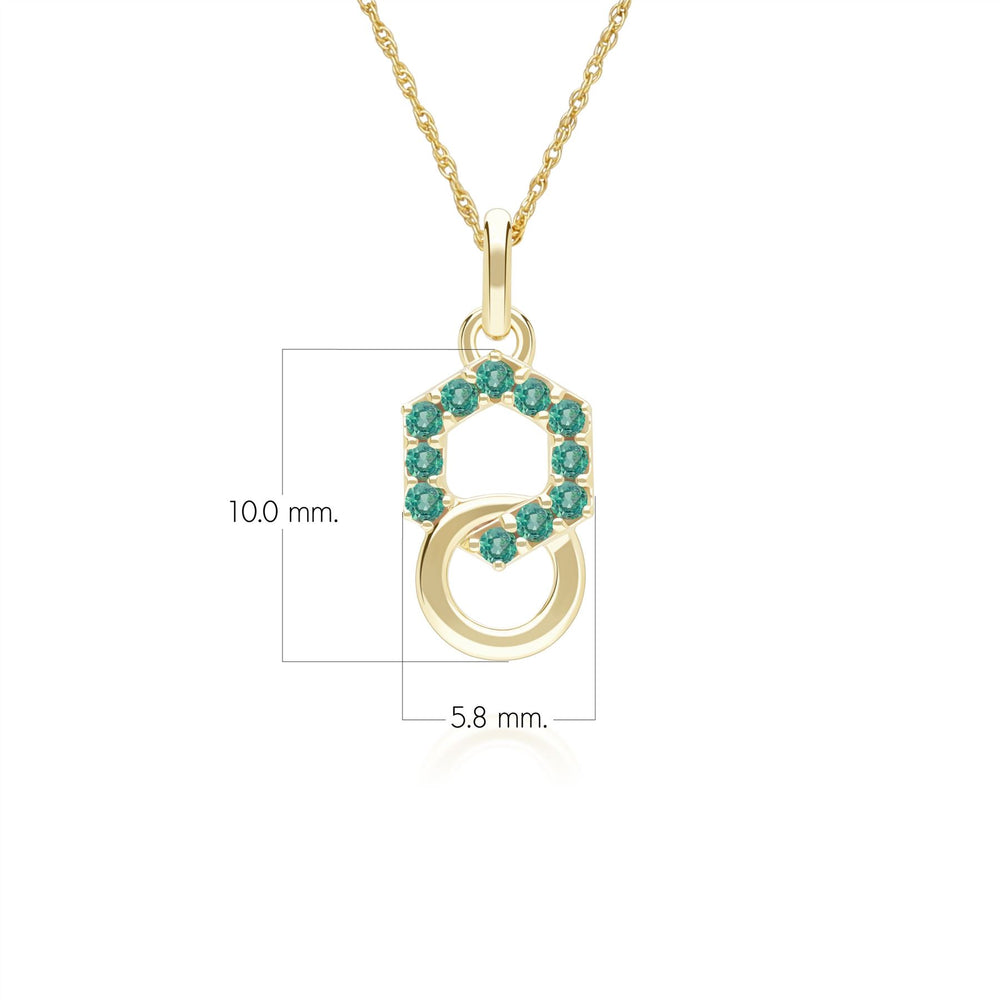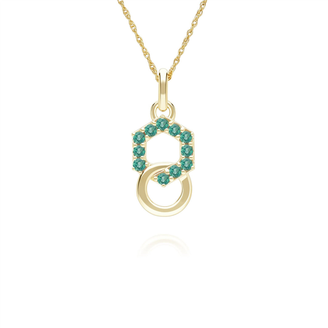 Geometric Hexagon and Round Linked with Prong set Emerald Pendant in 9ct Yellow Gold