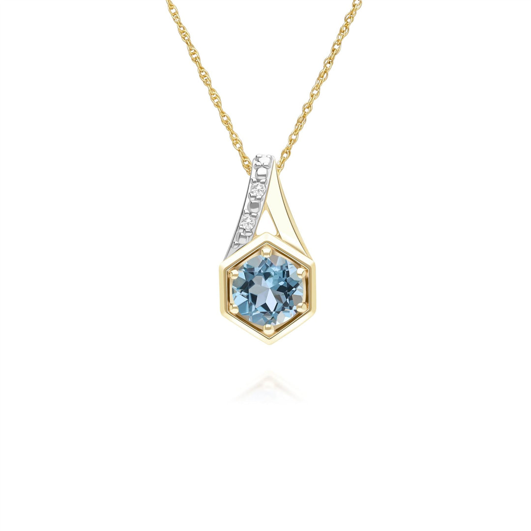 Geometric Hexagon with Prong set Round Topaz and Diamond Pendant Necklace in 9ct Yellow Gold