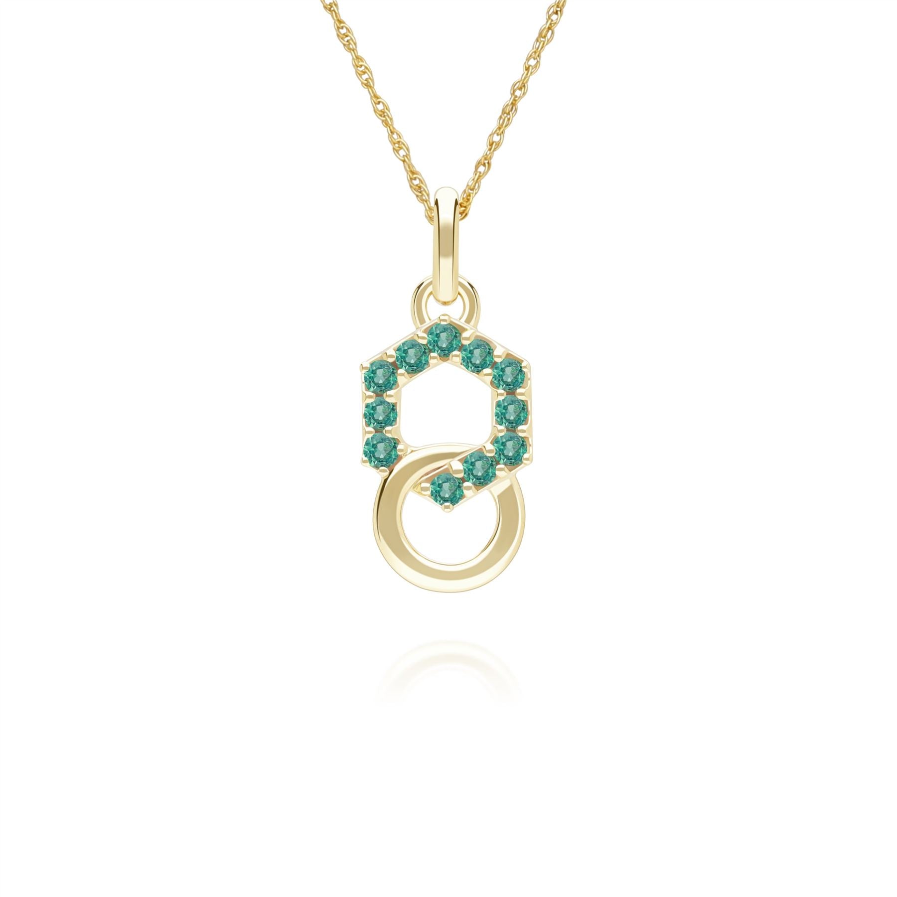Geometric Hexagon and Round Linked with Prong set Emerald Pendant in 9ct Yellow Gold
