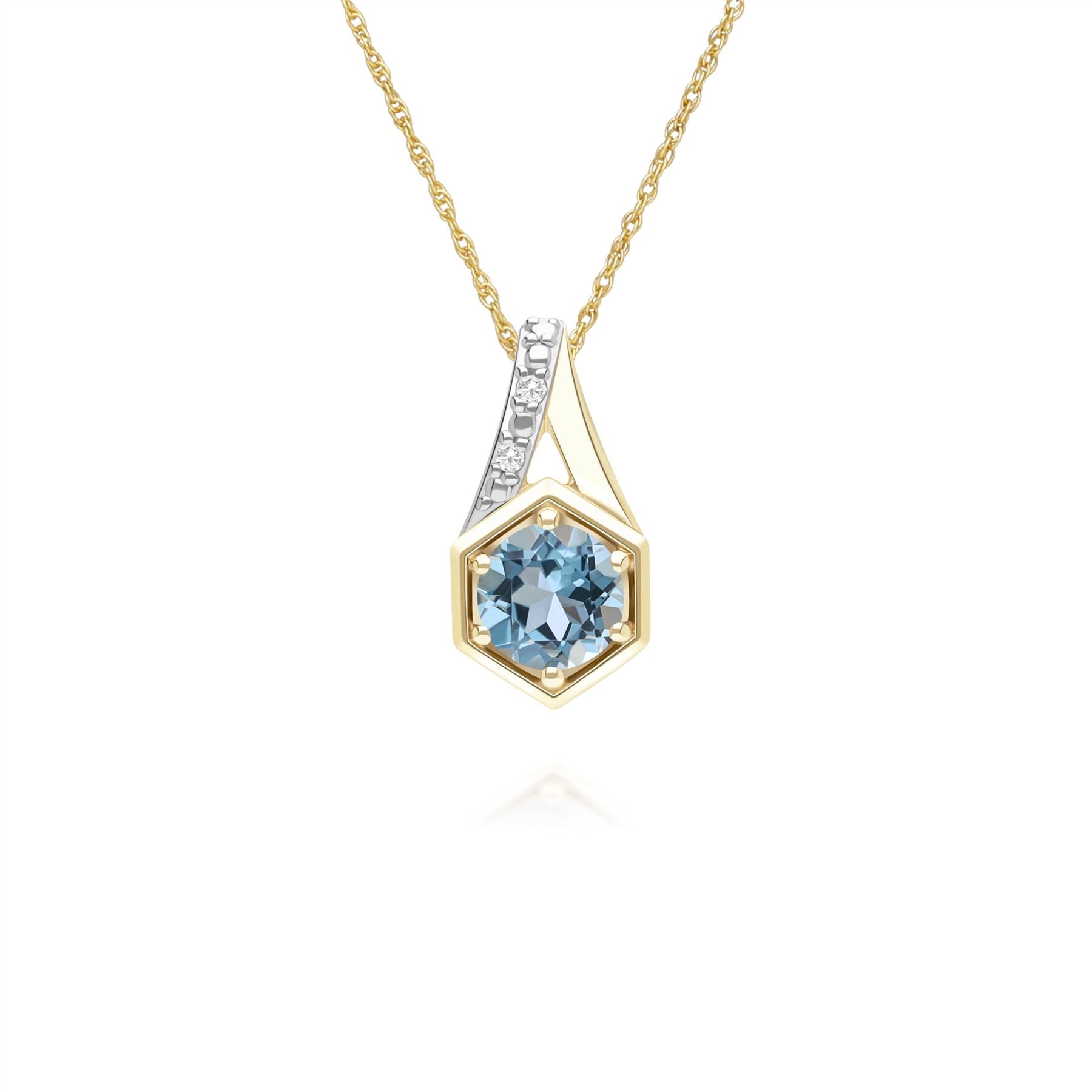 Geometric Hexagon with Prong set Round Topaz and Diamond Pendant Necklace in 9ct Yellow Gold