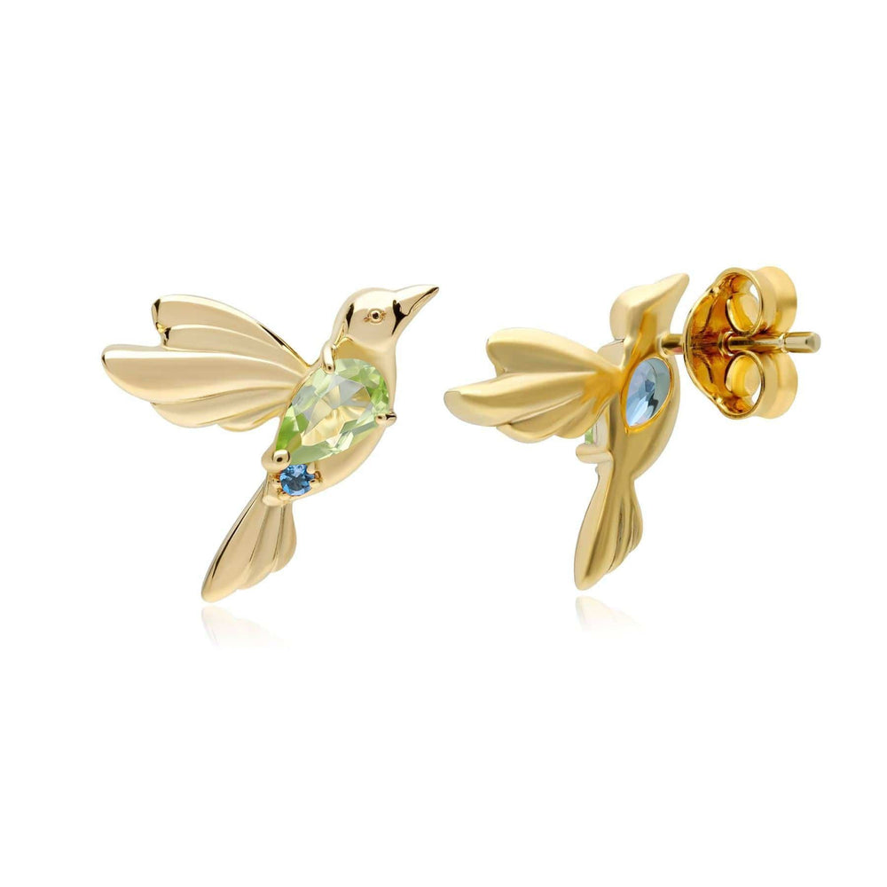 ECFEW™ Peridot and Blue Topaz Hummingbird Stud Earrings in 925 Sterling Silver