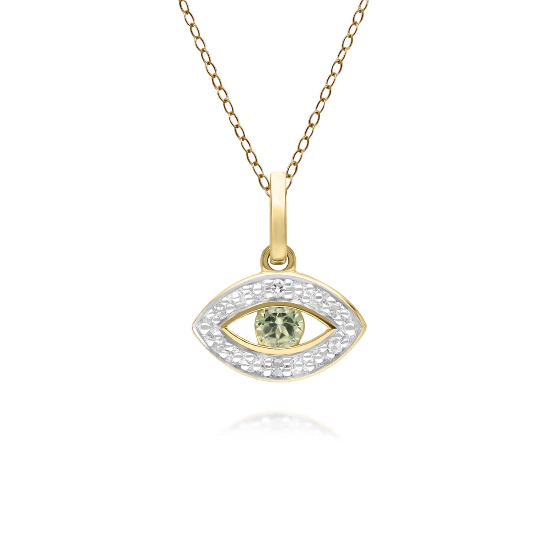 ECFEW™ Dainty Evil Eye Peridot & Diamond Pendant in 9ct Yellow Gold