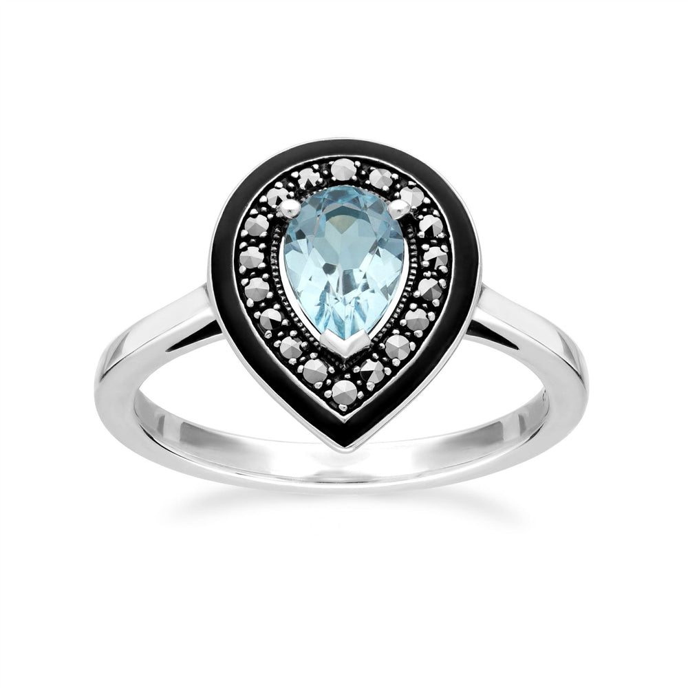 Art Deco Inspired Pear Cut Blue Topaz & Marcasite Ring