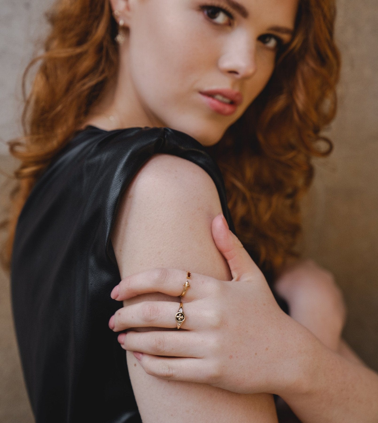 This stunning 9ct gold White Topaz Fleur De Lis signet ring is inspired by the historical heroine of France. Fleur De Lis is a decorative lily often used to represent Catholic saints of France. The perfect way to add power and elegance to your jewellery collection.
