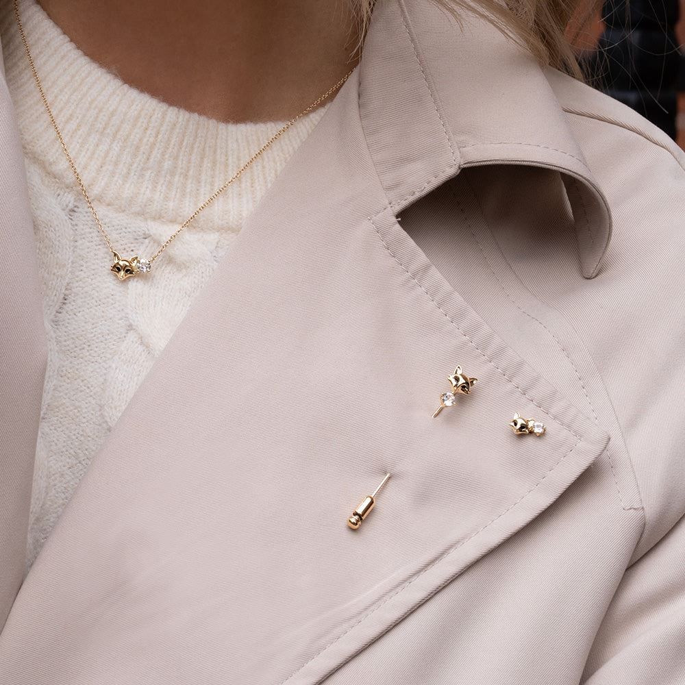 Gardenia White Topaz Fox Lapel Pin In 9ct Yellow Gold